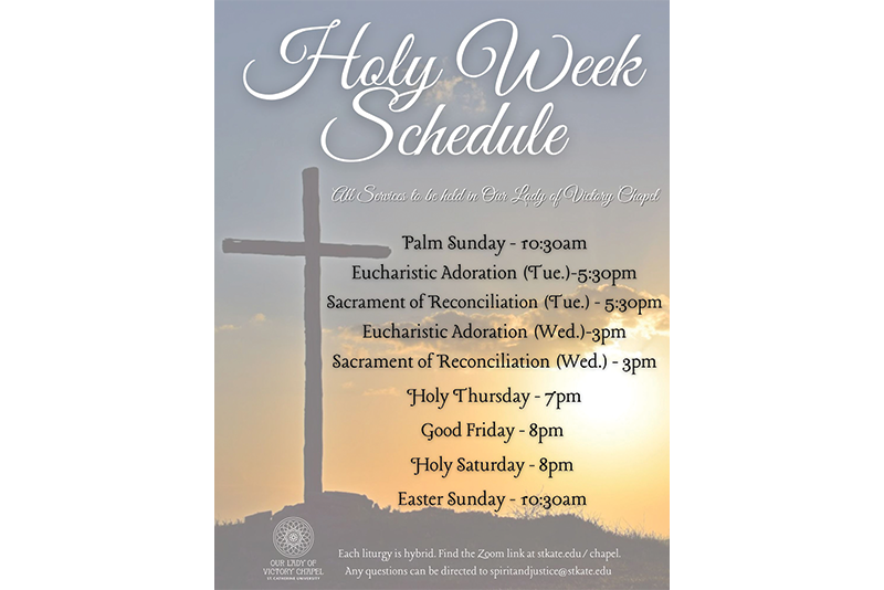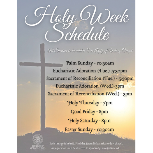 Join the Our Lady of Victory Mass Community and CSSJ this Holy Week in celebrating this wonderful time of year! All services will be held in-person in the beautiful Our Lady of Victory Chapel and online via Zoom.