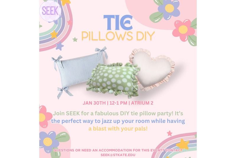 SEEK hosts Tie Pillows DIY Welcome Back Week Atrium 2 January 30, 2025 12:00 - 1:00PM Join SEEK for a fabulous DIY tie pillow party! It’s the perfect way to jazz up your room while having a blast with your pals! SEEK , Social , Undergrad Students